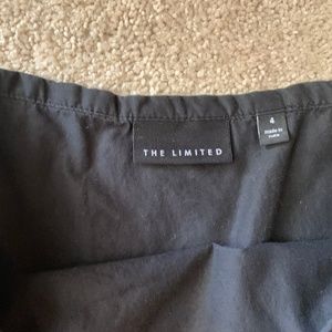 Pretty black skirt from The Limited, size 4, with lace eyelet detail on the bottom. This skirt is so pretty, very flowy at the bottom. It is double lined and has a side zipper. 100% cotton. About 22 inches long. Very good condition.