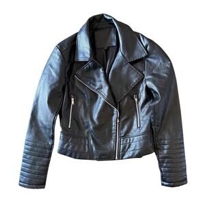 Black (faux) Crocodile Skin Leather Jacket Sz S
