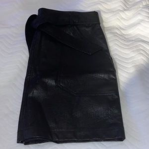 Black faux leather skirt. Has a front tie and a side zipper. Worn once
