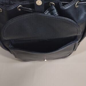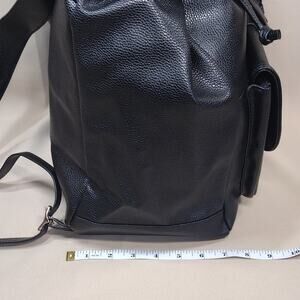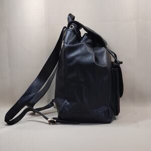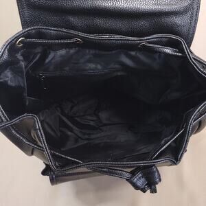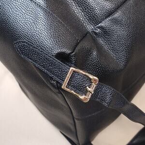 Sleek and stylish black faux leather backpack perfect for everyday use. Durable and versatile, ideal for any occasion.