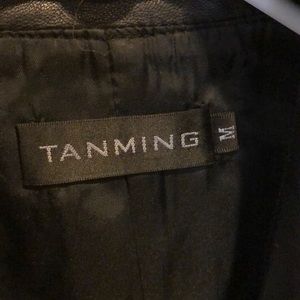 This cute black leather coat is a little too tight for me! It says medium on the tag, however it fits like a small! It has fun little zippers all over it, and I wore it once for date night out with a little black dress and black booties. So cute!