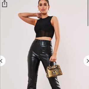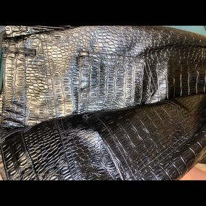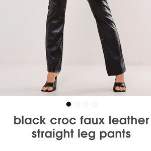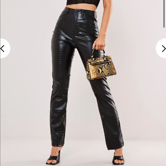 Black faux leather croc straight leg
