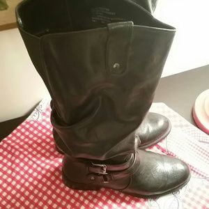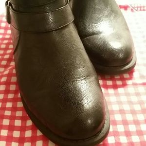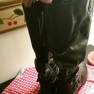 Has double strap buckle at ankle w/ rivet detial, full zip, and gore panel 1.5 inches shaft 14 in great boot, excellent condition