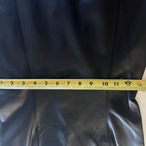 this dress feels & looks like real leather (stretch for form fitting) So flattering, never worn Marked XS Size 0-2 I would say, and likely would also fit a slim size 4 woman length 38.5”