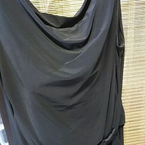 Pilled chest with flowly ruffle cascade. Floor length. 100% polyester. V cut in back.