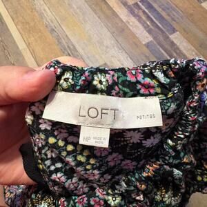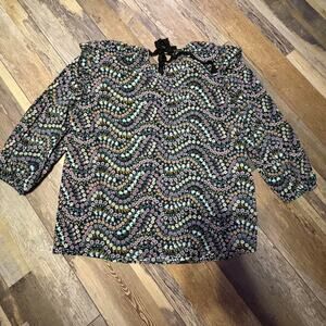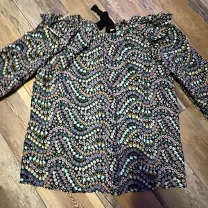 Black floral peasant top / ruffle shoulder , tie back.