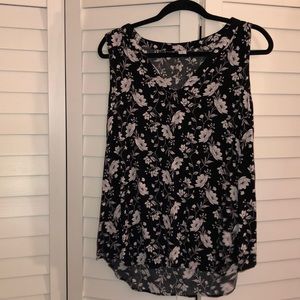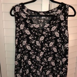 Old Navy black floral print tank top. Pair it with a cardigan for work. Looks great with black jeans and booties.
