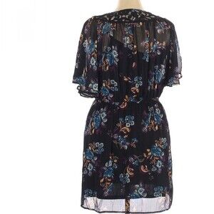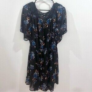 Black floral sheer overlay half button dress size XL