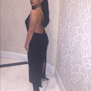 Black flowy prom dress with chain