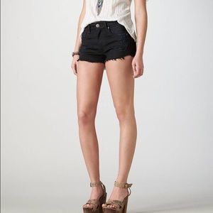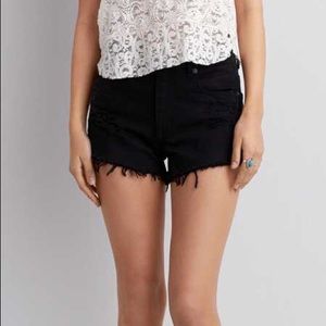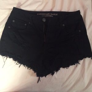 Black distressed frayed shorts from American eagle! Size 12 but I'm an 8 and it fits me so that is super weird! Too big around my thighs though so I've only worn it once! I really like these shorts! Not sure if I want to sell so I'm not going to lower my asking price. I might swap if I really like something. Make an offer, the worst that can happen is I say no!