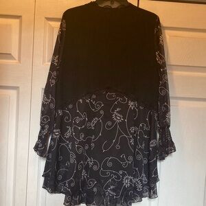 Black dress with silver studs around neckline and waist. Ruffles around bottom and fully lined.
