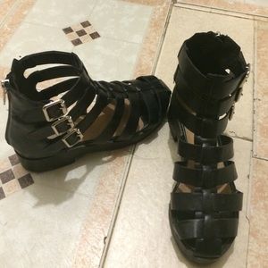 Black strappy gladiator sandals, super comfy these were my go to shoes, but I'm trying to change my style 😕😊. NO TRADES;Open to offers