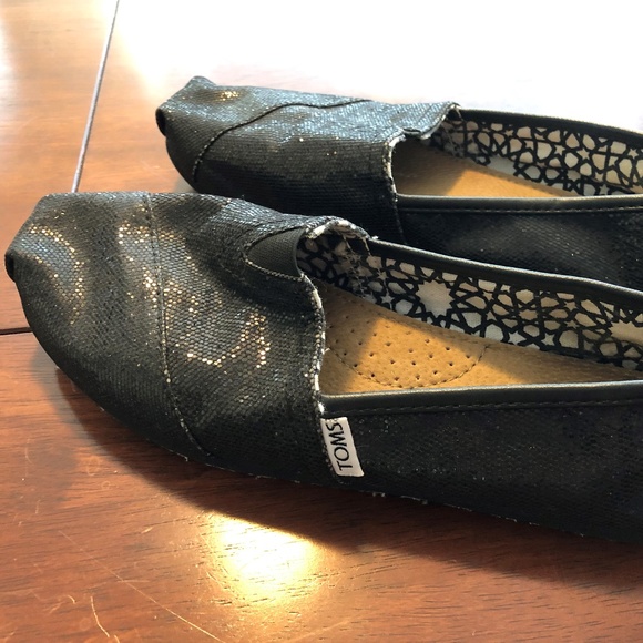 Black glitter womens espadrilles from Toms. Size 8,5 Slight wear to them. Selling because they're too big.