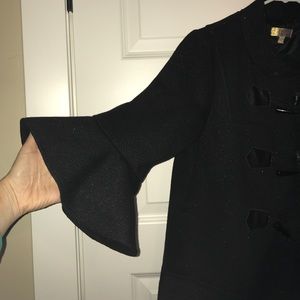 Pea coat style evening jacket with ruffle 3/4 skeeve