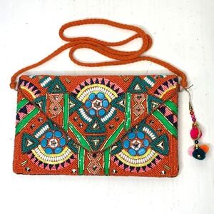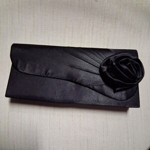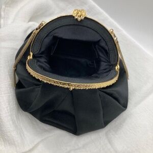 You will get lots of compliments on this unique little purse! Black satin soft fabric with gold & rhinestone closure and gold chain. Adorable! A must have for beach, cruise, wedding and cocktail parties!