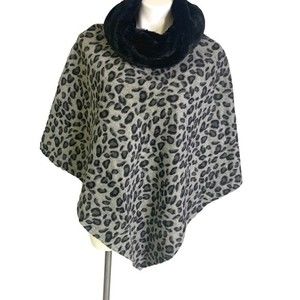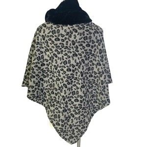 Black gray leopard fleece poncho one size
