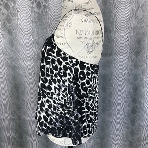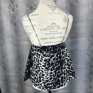 Excellent used condition . Sexy little thang ! Black white grey cheetah print tank top blouse . Flare bottom . Spaghetti straps . 100% silk . Topshop .