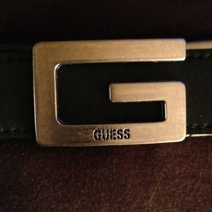 This belt is black leather with a silver "G" as the belt buckle... From guess... Only worn once