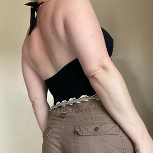Fit & features: Fits like a size L, this item has lots of stretch. Lightly padded bust, halter style neckline. Can be worn as a regular top as well. Shown on a size L/5’5