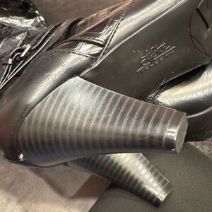 Beautiful and sleek very chic life stride, velocity, flex soul wooden heel black crocodile embossed with triple wrapped ankle, buckle, and top buckle