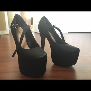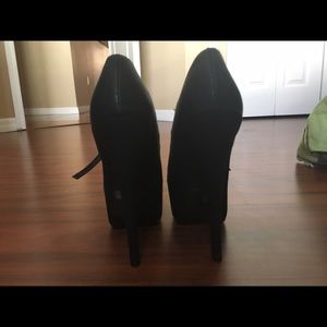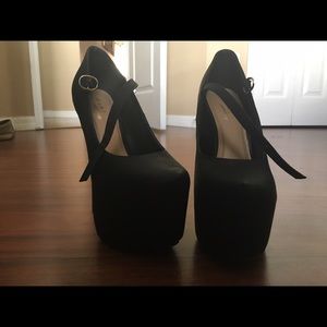 These are super cute black platforms. The heel is about 6 inches and the platform part is about 3. These were only worn a couple of times !