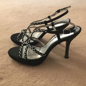 Fits best a 6.5,7,7.5. Black heels 8M. All gems are still attached.