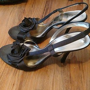 These were shoes I have only worn twice. They are in near perfect condition with a little stuck on mud on the bottom of them. The heel is about 3 inches tall