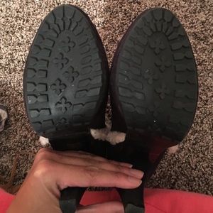 Winter black high heel booties with wool lined inside and around the shoe. Only worn a few times for special occasions.