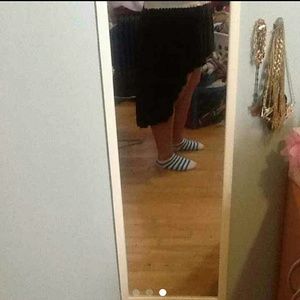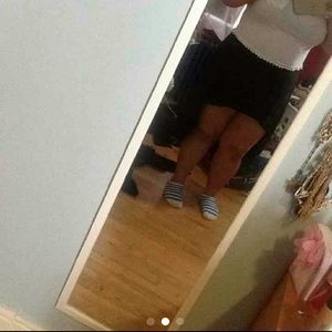 This is a black high low shirt. I am 5'3, the waist band is stretchy and it's from wet seal.