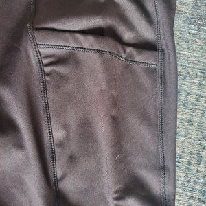NWT leggings from Banana Republic in black. They are a high rise, full length style (please see photos for measurements) with side pockets on both outter thighs large enough to hold a cell phone. The finish on the leggings is slightly shiny, so best for a sporty look.