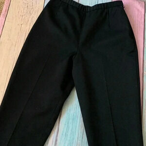 Black wool trousers. Size 10 would probably fit around a small. In great pre owned condition. Straight leg. 100% pure wool with lining on the inside. No stretch. High rise trousers.