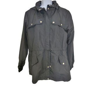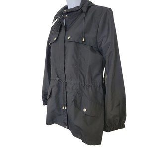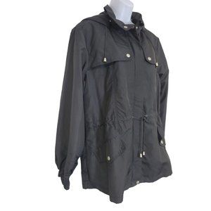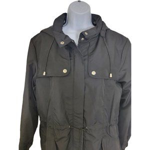 Black rain coat from Charter Club Golf Collection. Women' size 1X, NWT. removeable hood, elastic drawstring waist, snap buttons, lined.