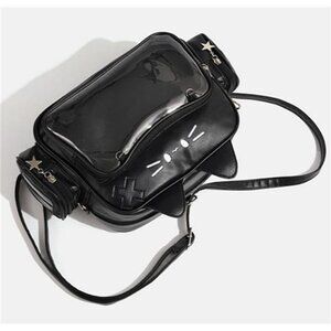 Black ita bag backpack clear window pin display crossbody shoulder tote cosplay