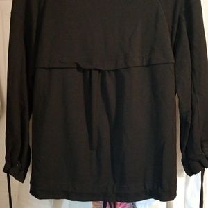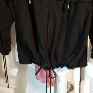 Cute black jacket with ties at waist and on the 3/4 length sleeves