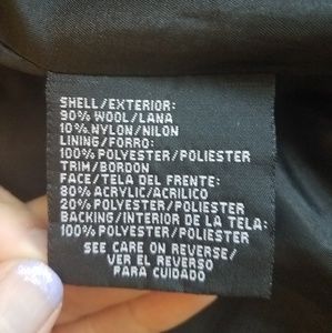 Beautiful black wool button up jacket. Fully lined. Faux fur hood and cuffs. Size small. Adjustable side waist straps. Pockets