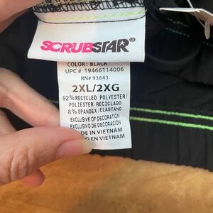 Brand new jogger style scrub pants. Black with neon green accents. 4 way stretch. Elastic drawstring waist and elastic at the bottom of the legs.