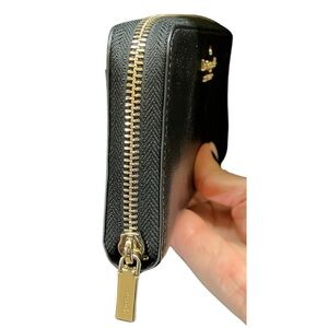 Interior: 12 credit card slots, 2 slip pockets, zip coin compartment, and 3 gusset compartments.