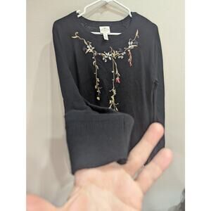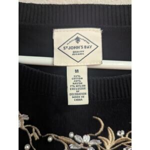 Black knit sweater w/floral embroidery & pearl embellishments by St Johns Bay, M
