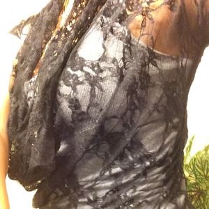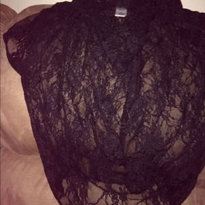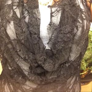 Kind of short , Black lace top with hanging neck line . Great condition . No tears .