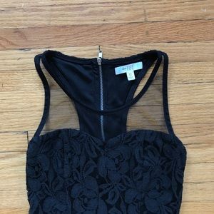 This dress is super comfy and cute!! Perfect for fancy dinners and parties! The bodice is sweetheart style that goes into a sheer neckline.