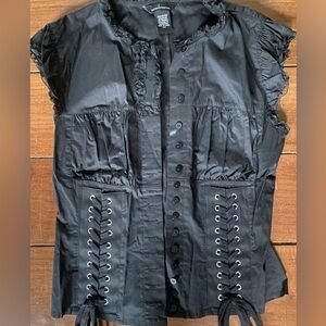 Black lace up button down w/ lace trim