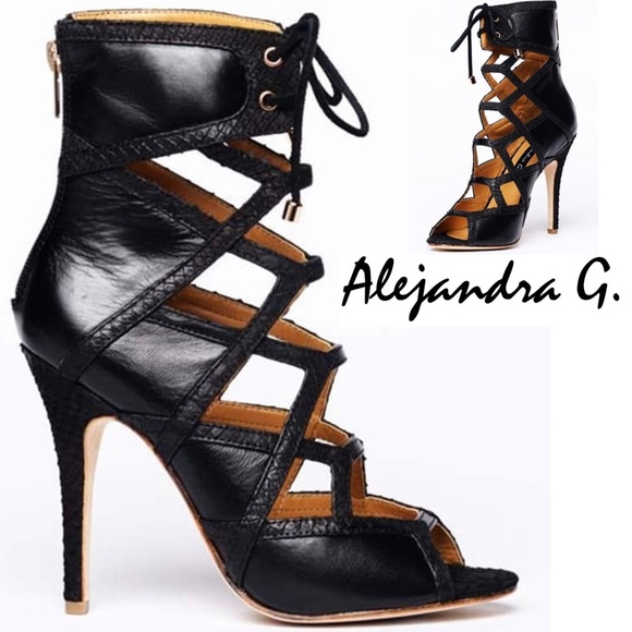 Black laced Alejandra G Wanda Black Leather Snake Stiletto Heel Sandals Pumps 37