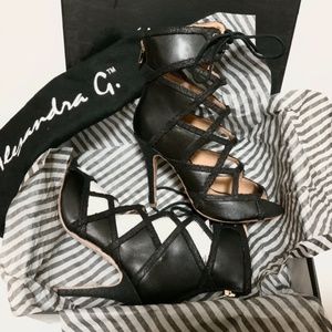 Black laced Alejandra G Wanda Black Leather Snake Stiletto Heel Sandals