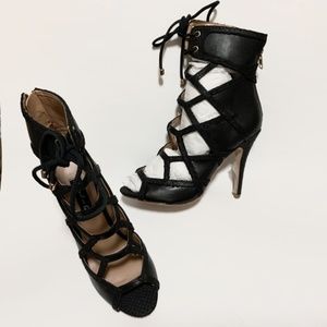Stiletto heel and caged look create a sexy and stylish silhouette.
