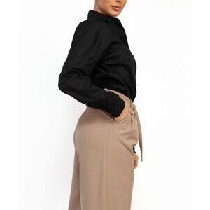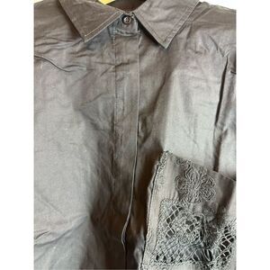 Black lace long sleeve button up shirt