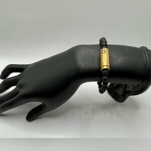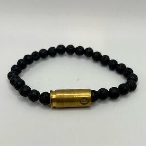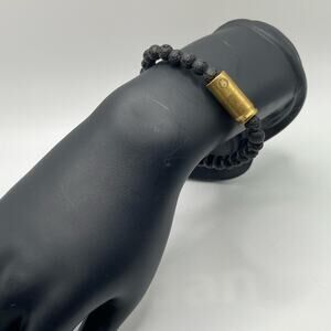 Unique bracelet made out of lava beads with gold tone accent Size medium In great condition A59
