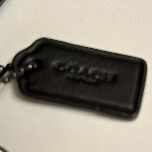 Black leather Coach wristlet with embossed Tyrannosaurus Rex