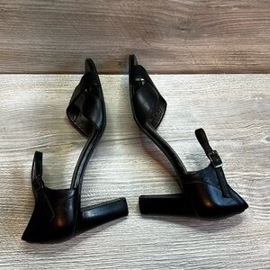 Black leather Naturalizer Nettle open toe ankle buckle strapped heels size 9