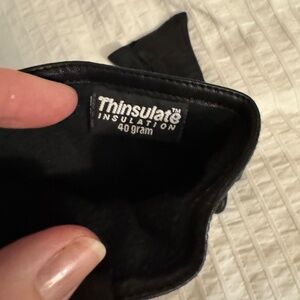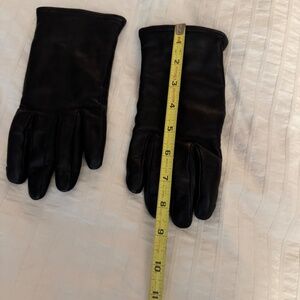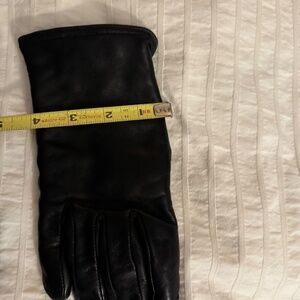 Black leather ladies’ gloves in great condition. Warm Thinsulate lining. Size marked XL but they fit me well and I’d normally wear a large; see measuring tape in photos.