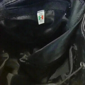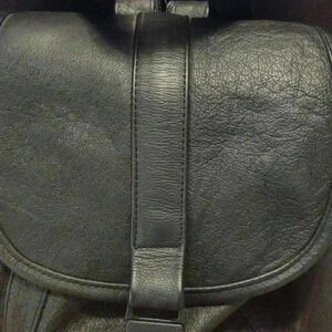 Black leather backpack 2 zippered pockets outside 1 inside 100% leather medium